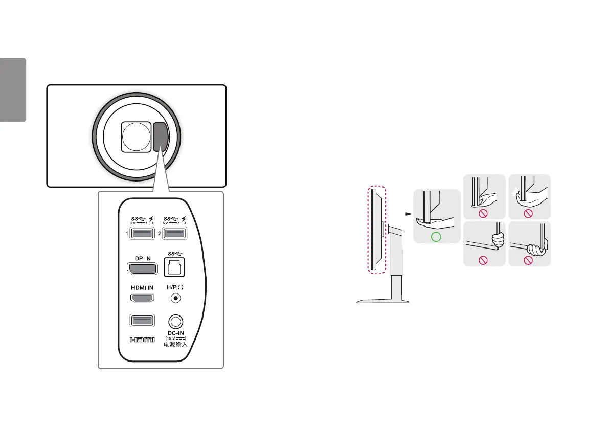 • Hold the bottom and side of the monitor frame firmly. Do not hold the panel itself.