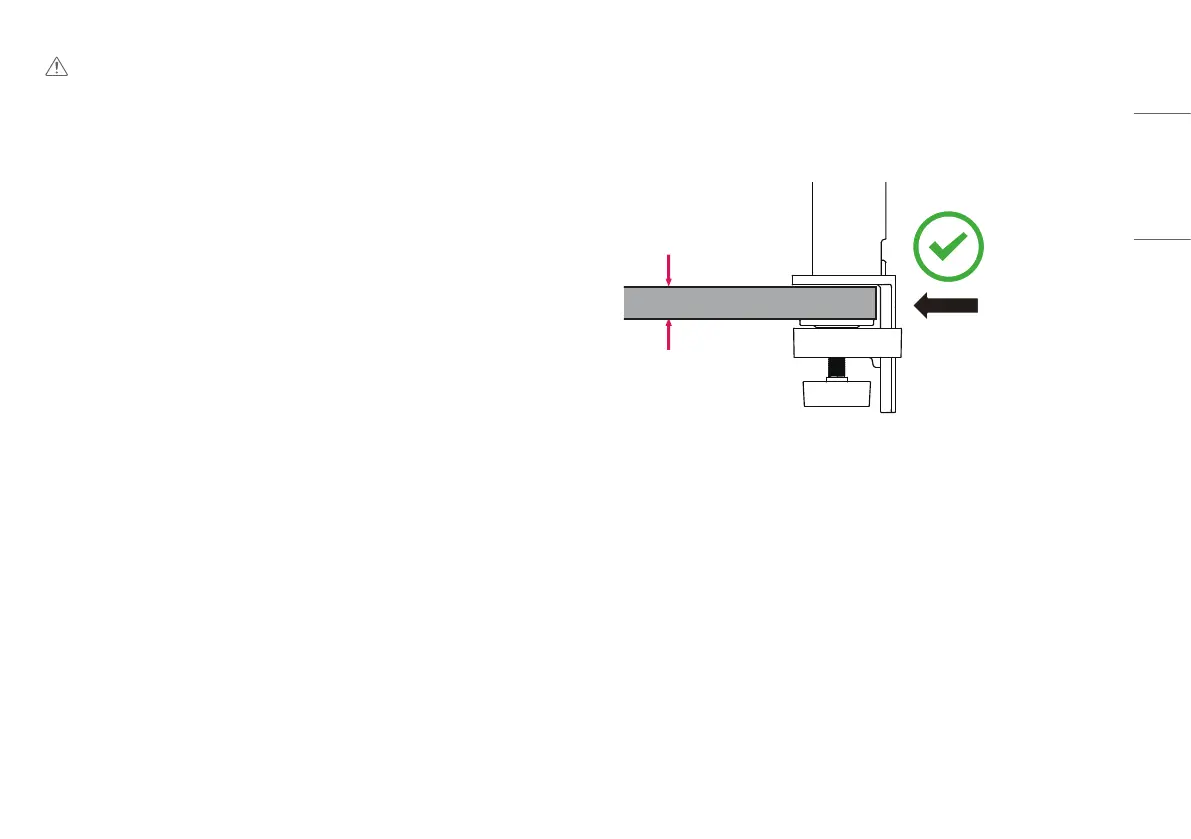 • When installing the stand on the table, make sure the stand is fully engaged to the table so that you would