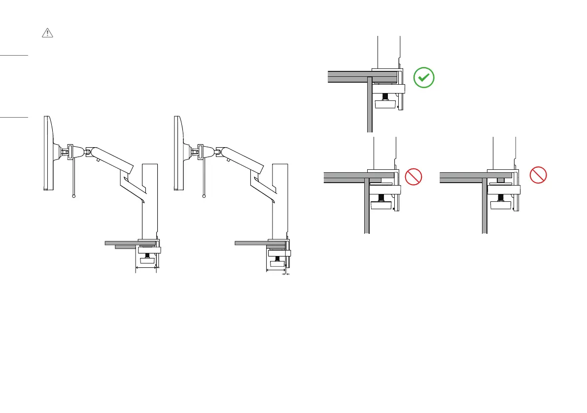• Make sure the table is solid and stable enough to fully support installation of the monitor. Tables made of
