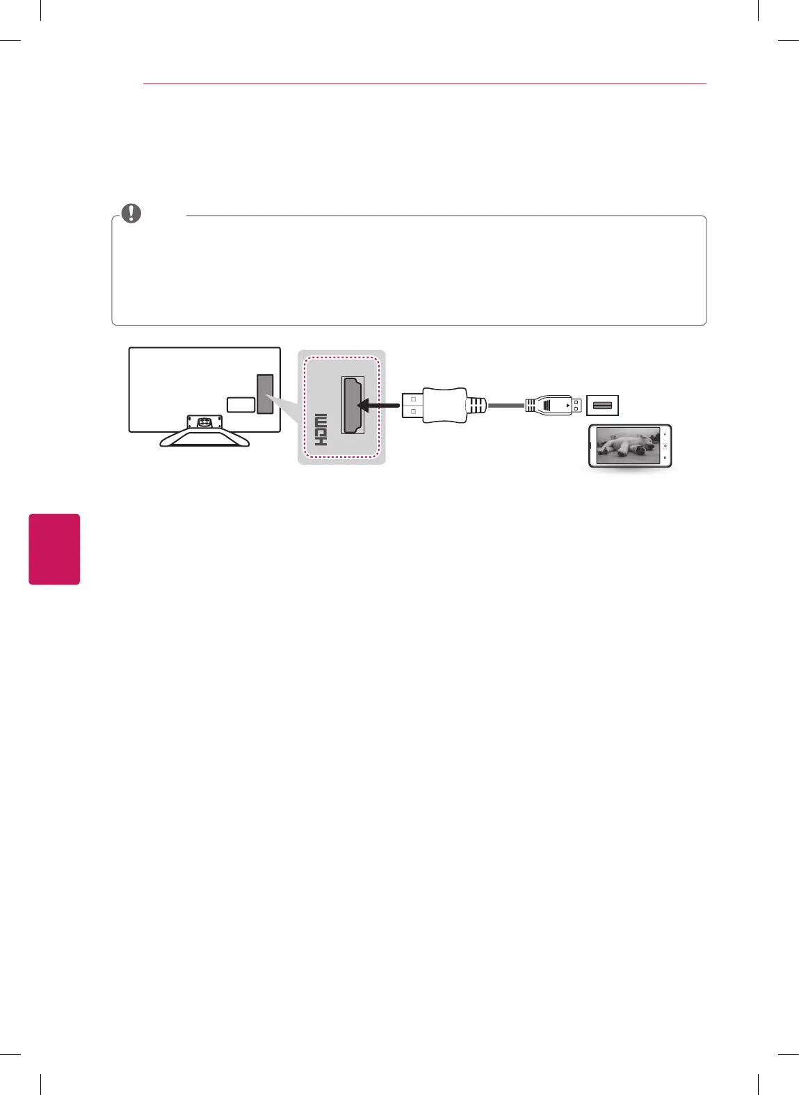 An MHL supported cable is needed to connect the TV and a mobile phone.