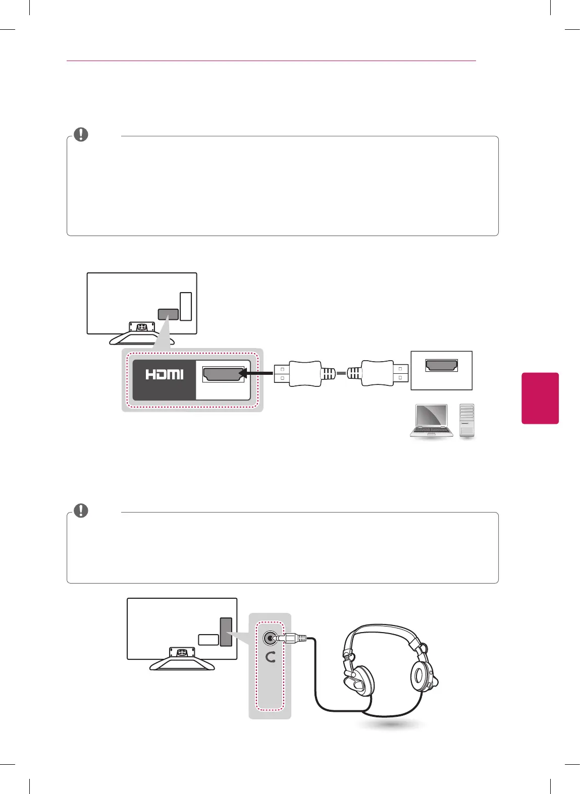 If you use DVI to HDMI cable for PC, you have to use external speaker for PC audio sound.