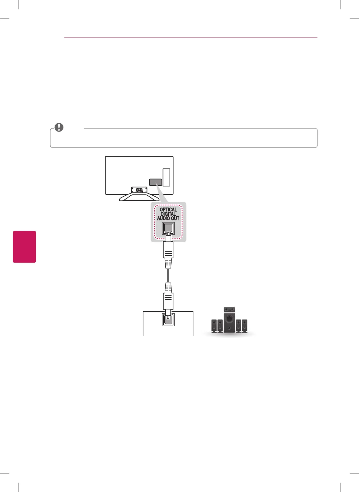 Transmits a digital audio signal from the TV to an external device. Connect the external device and the TV with the