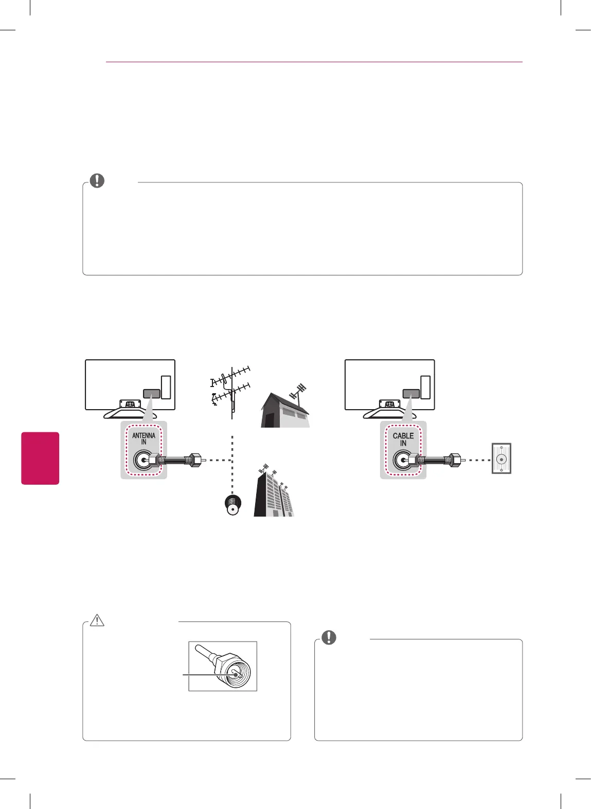 Para mirar televisión, conecte una antena, un cable o una caja de cable y siga estas instrucciones. Las ilustraciones