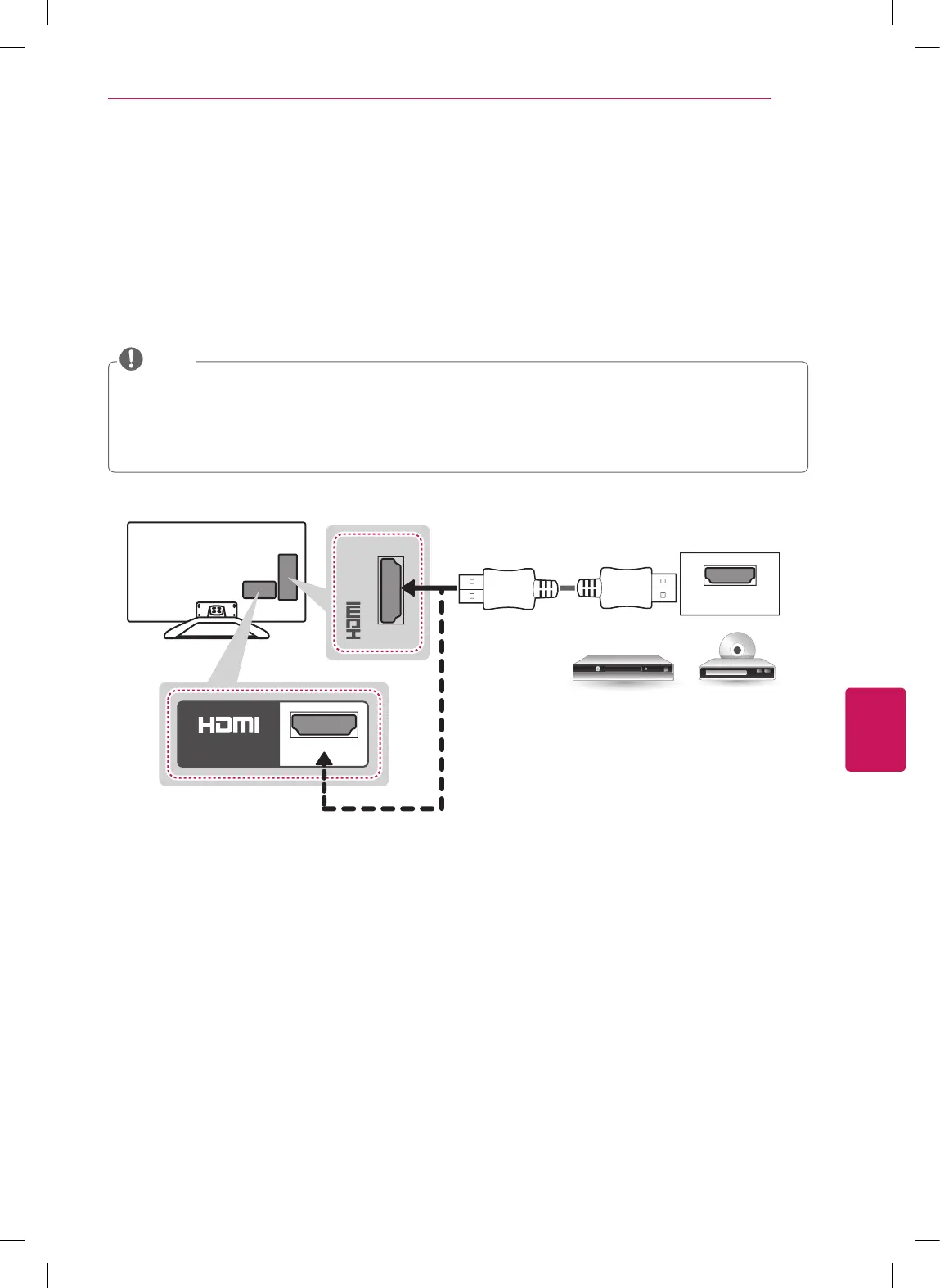 Transmite las señales de audio y video digitales de un dispositivo externo al televisor. Conecte el dispositivo externo y el