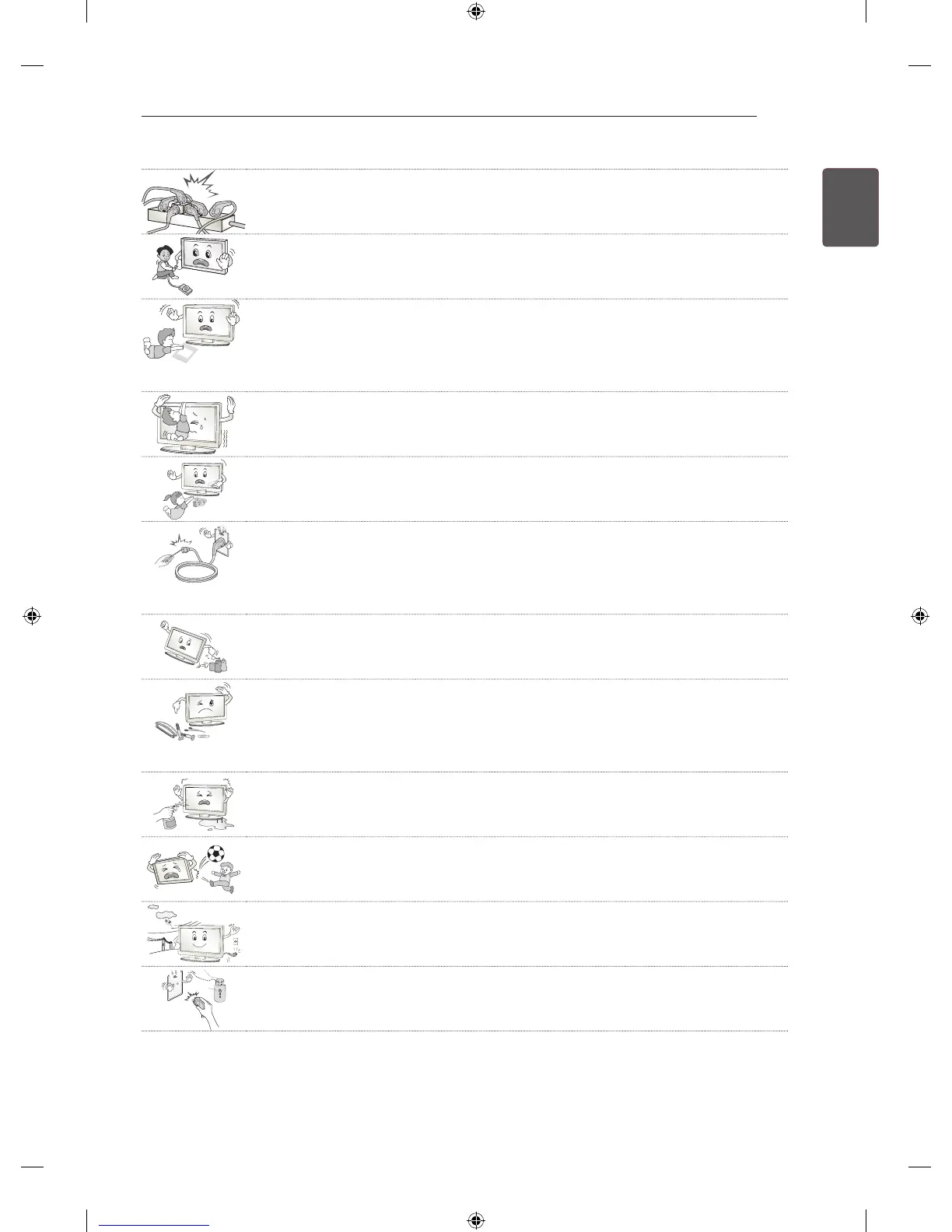 Otherwise, the TV may fall over, which may cause serious injury.