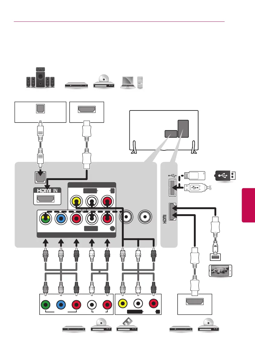 dispositivo externo y el televisor con el cable HDMI tal como se muestra. Dependiendo del modelo, el