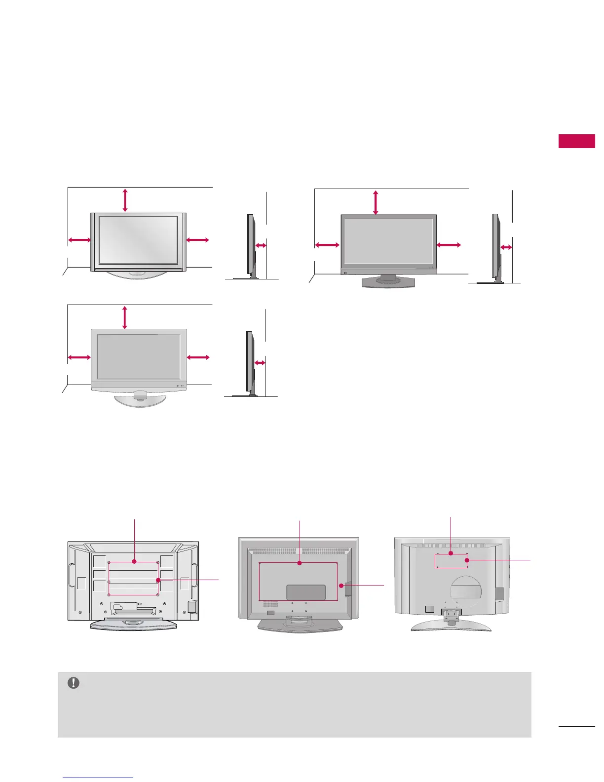 For proper ventilation, allow a clearance of 4inches on all four sides from the wall.