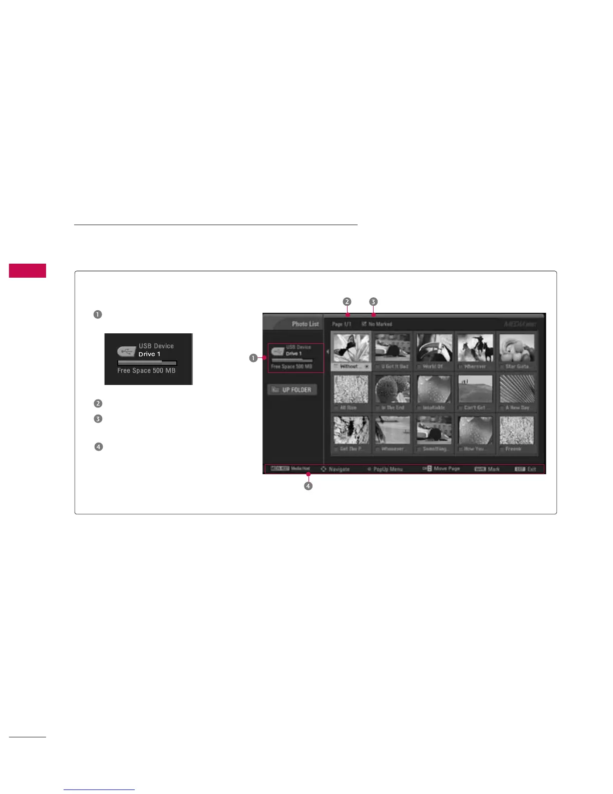 It’s available to playback the photo file(*.jpg) in the USB device.