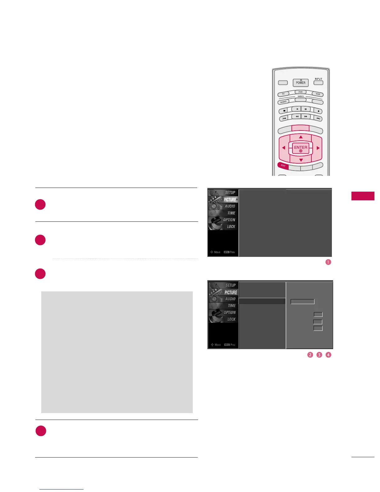 When selecting Picture Mode options (User 1 and User 2), you can choose