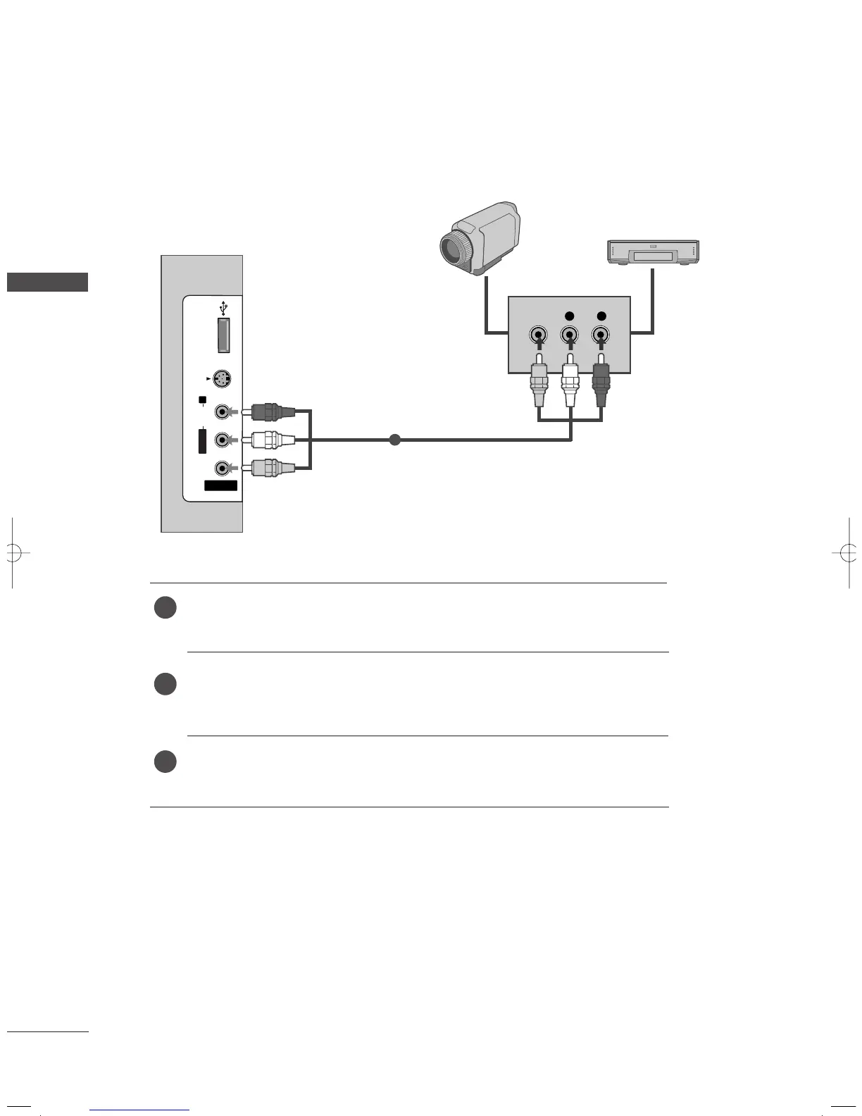 Video = yellow, Audio Left = white, and Audio Right = red