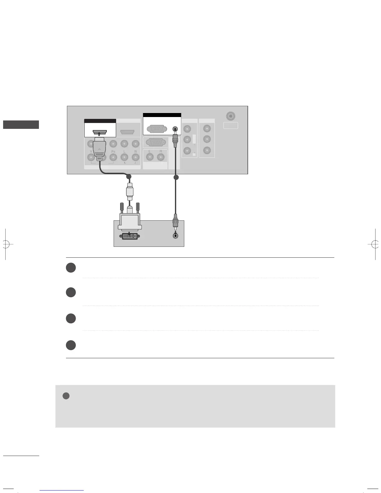 If the PC has a DVI output and no HDMI output, a separated audio connection is necessary.