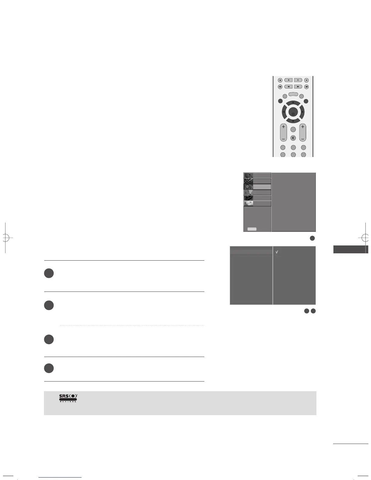 You can select your preferred sound setting; SRS TSXT, Standard,