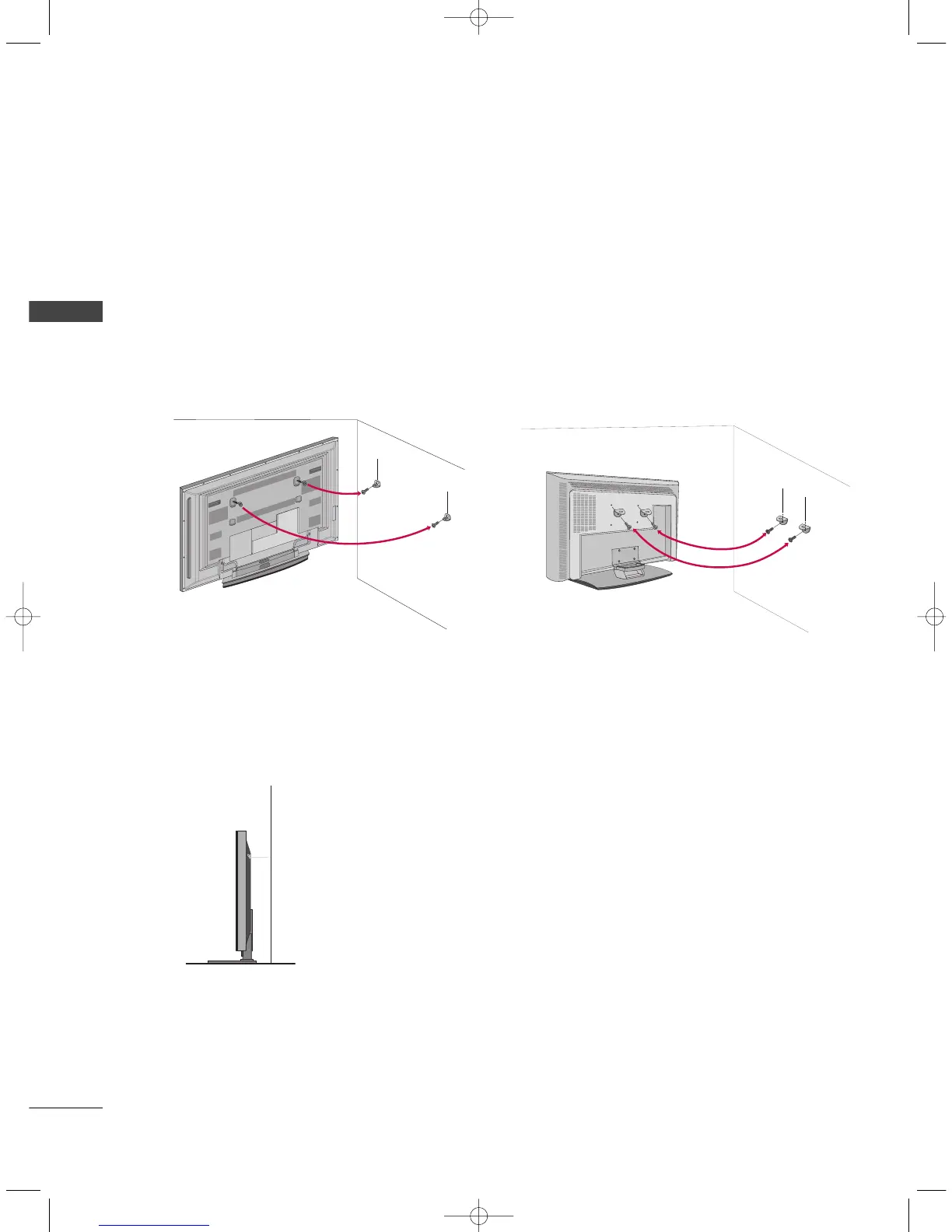 Insert the eye-bolts (or TV brackets and bolts) to tighten the product to the wall as shown in the picture.