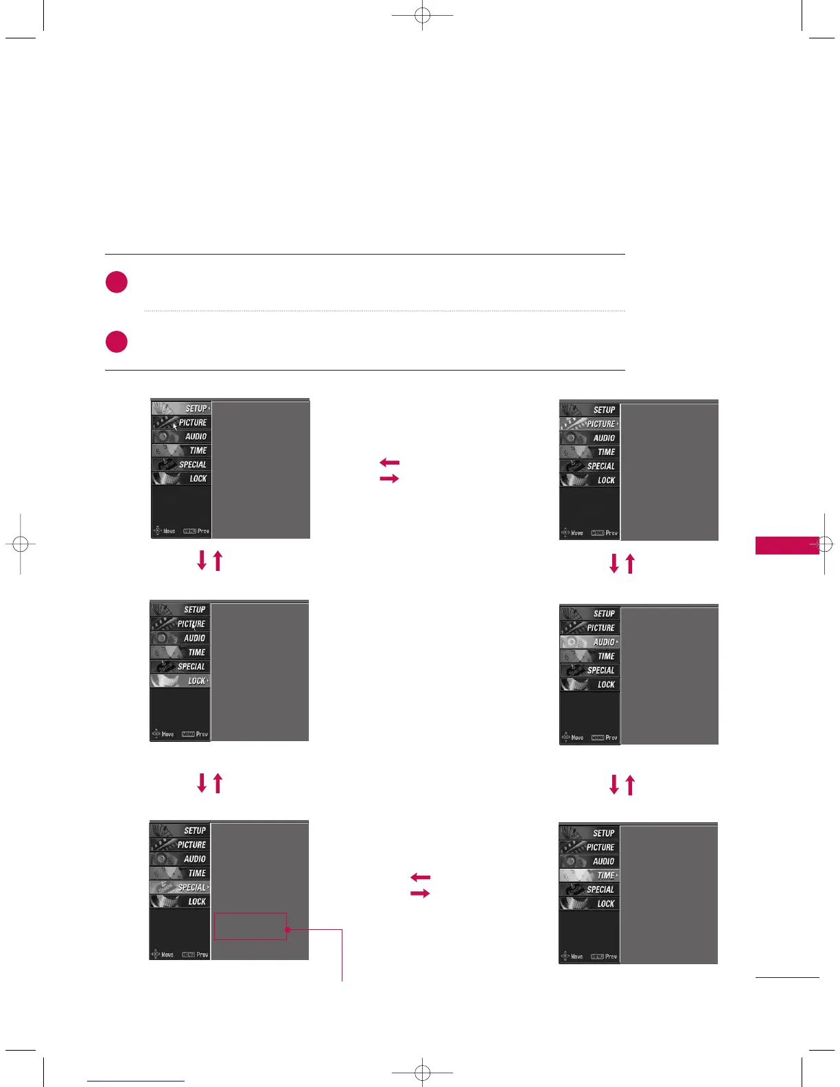 ON SCREEN MENUS SELECTION AND ADJUSTMENT