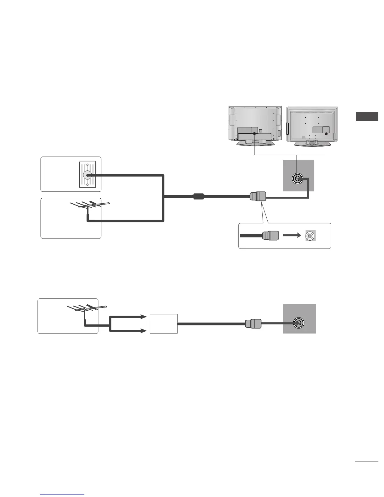 In poor signal areas,to get better picture quality, install a signal amplifier to the antenna as shown to the right.