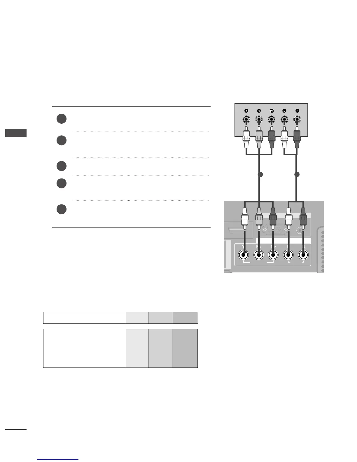 To get better picture quality, connect a DVD player to the component input ports as shown below.