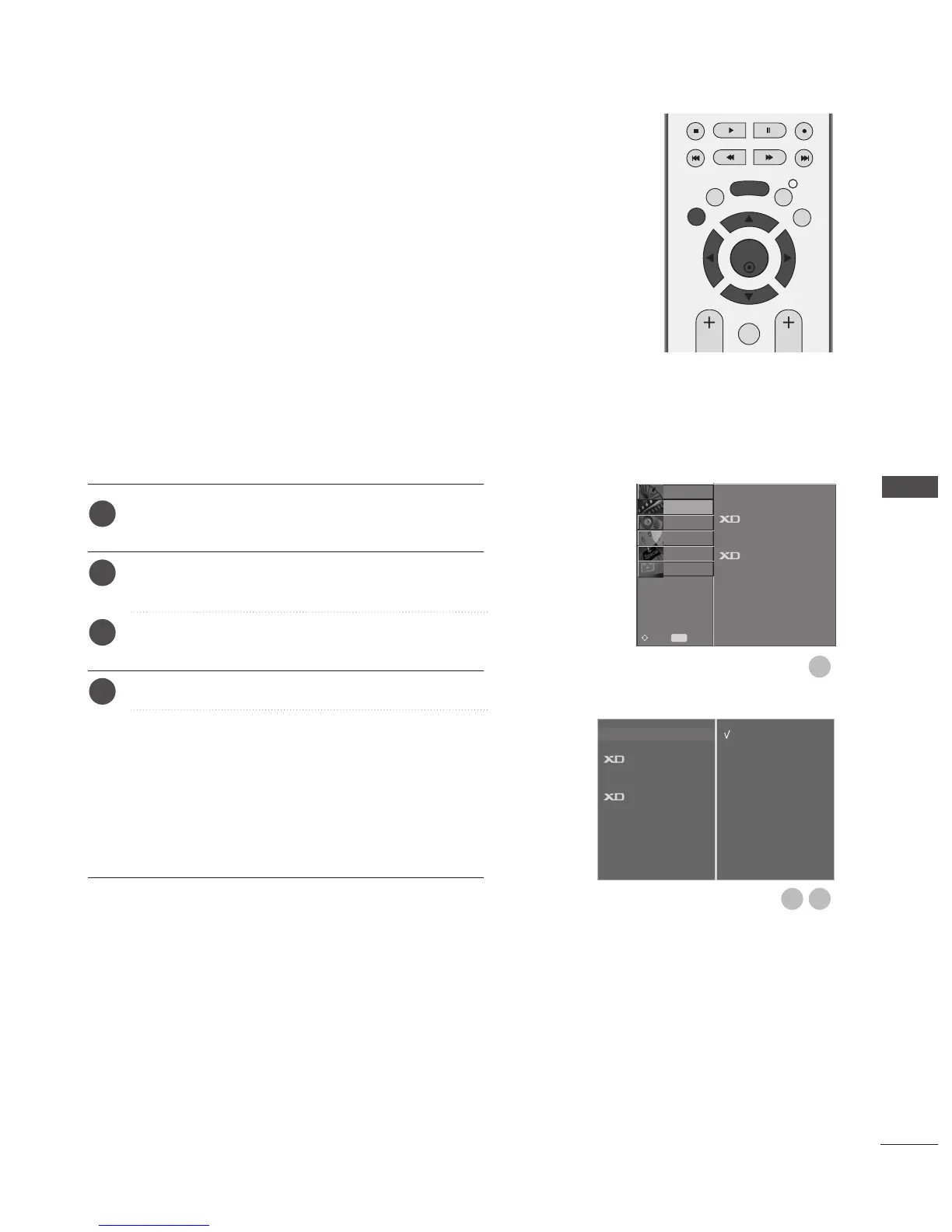 Mode menu based on the programme category.