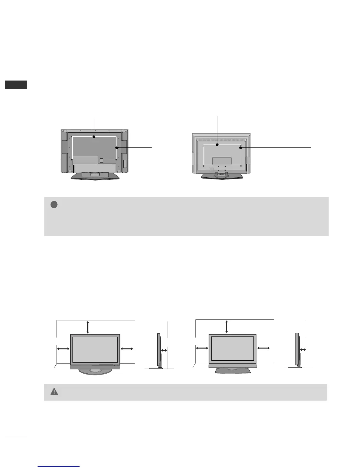 For proper ventilation, allow a clearance of 4inches on all four sides from the wall.