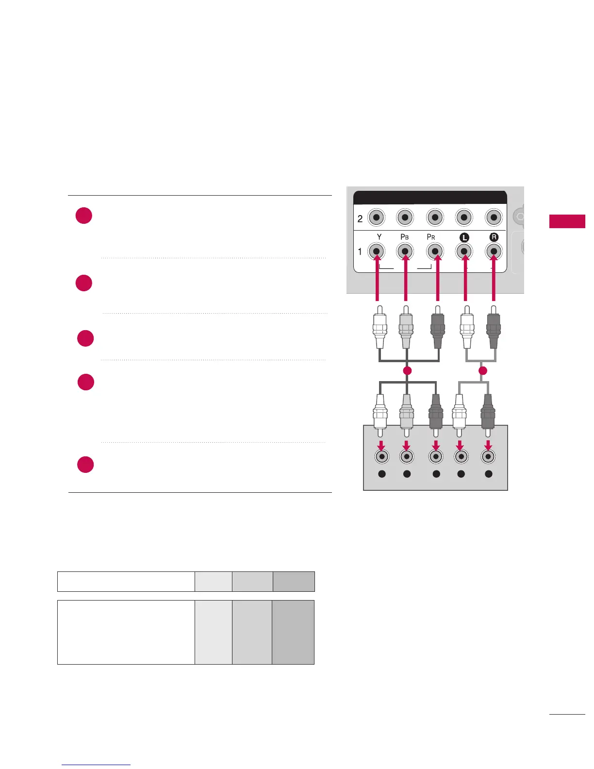 To get better picture quality, connect a DVD player to the component input ports as shown below.