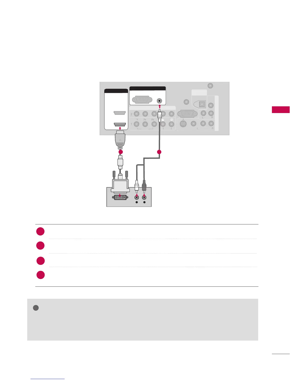 Connect the DVI output of the PC to the HHDDMMII//DDVVII IINN 11jack on the set.