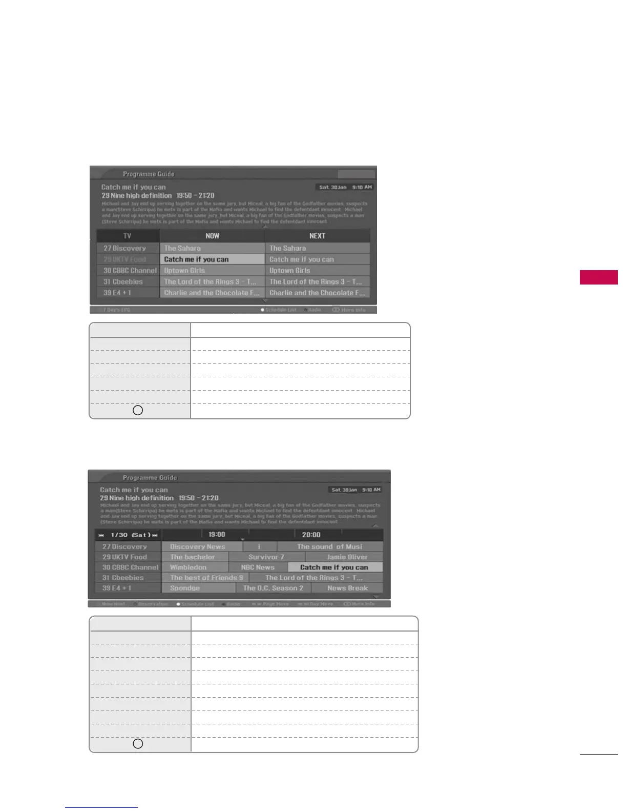 Button Function in NOW/NEXT Guide Mode