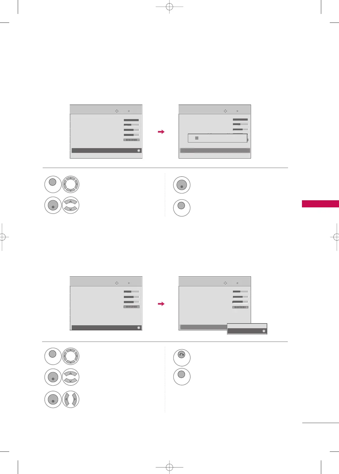 Settings of the selected picture modes return to the default factory settings.