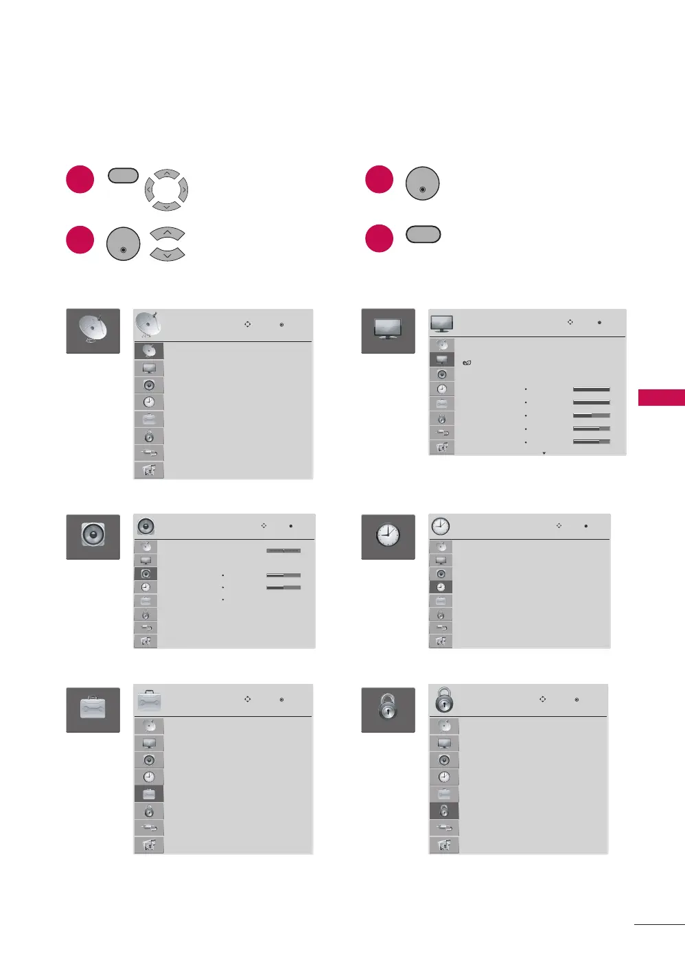 LG 32LD400 - Navigating TV Menus; Menu Navigation Controls; Main Menu Categories Overview