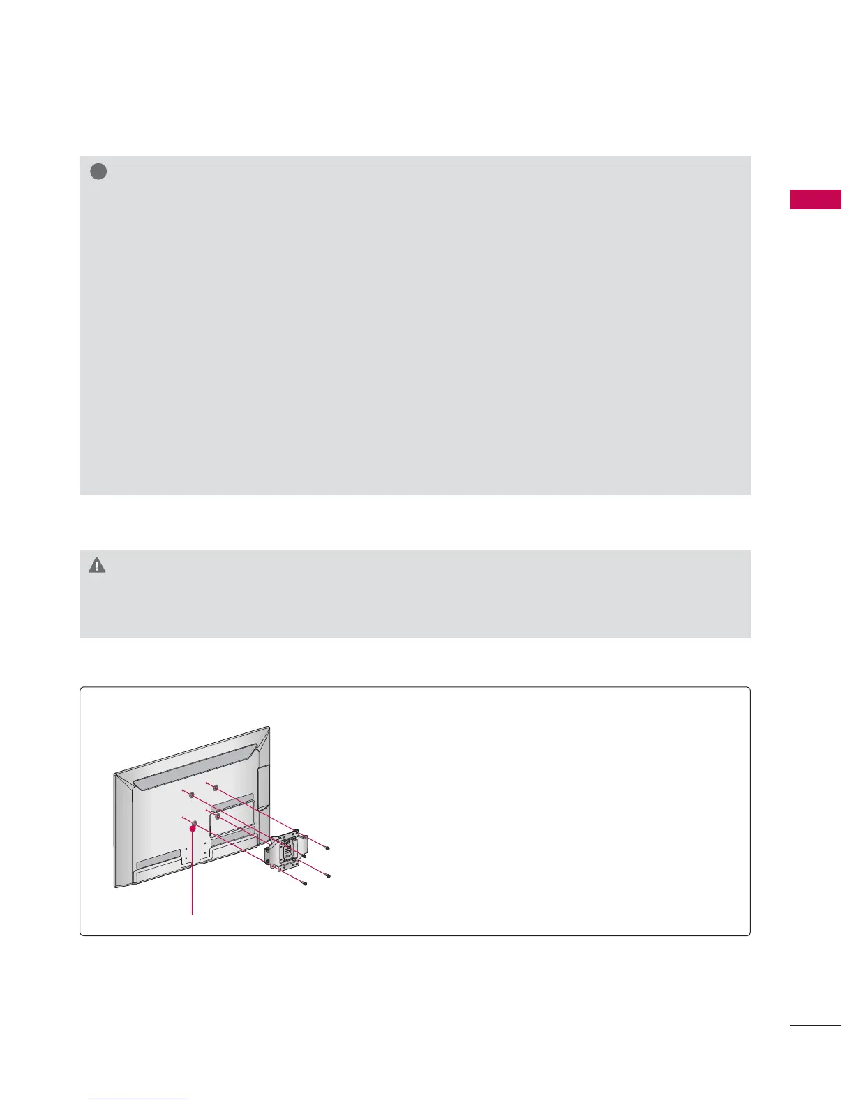 Do not install your wall mount kit while your TV is turned on. It may result in personal injury due to