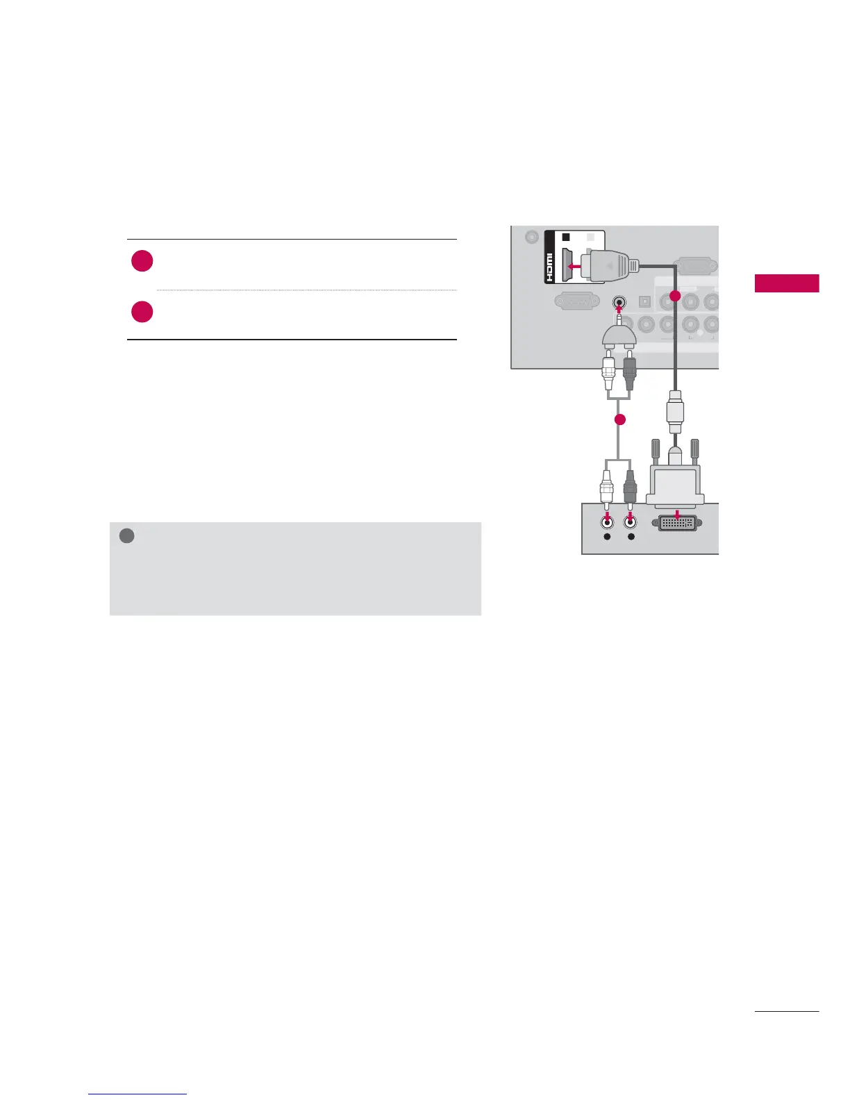 ► A DVI to HDMI cable or adapter is required for this con-