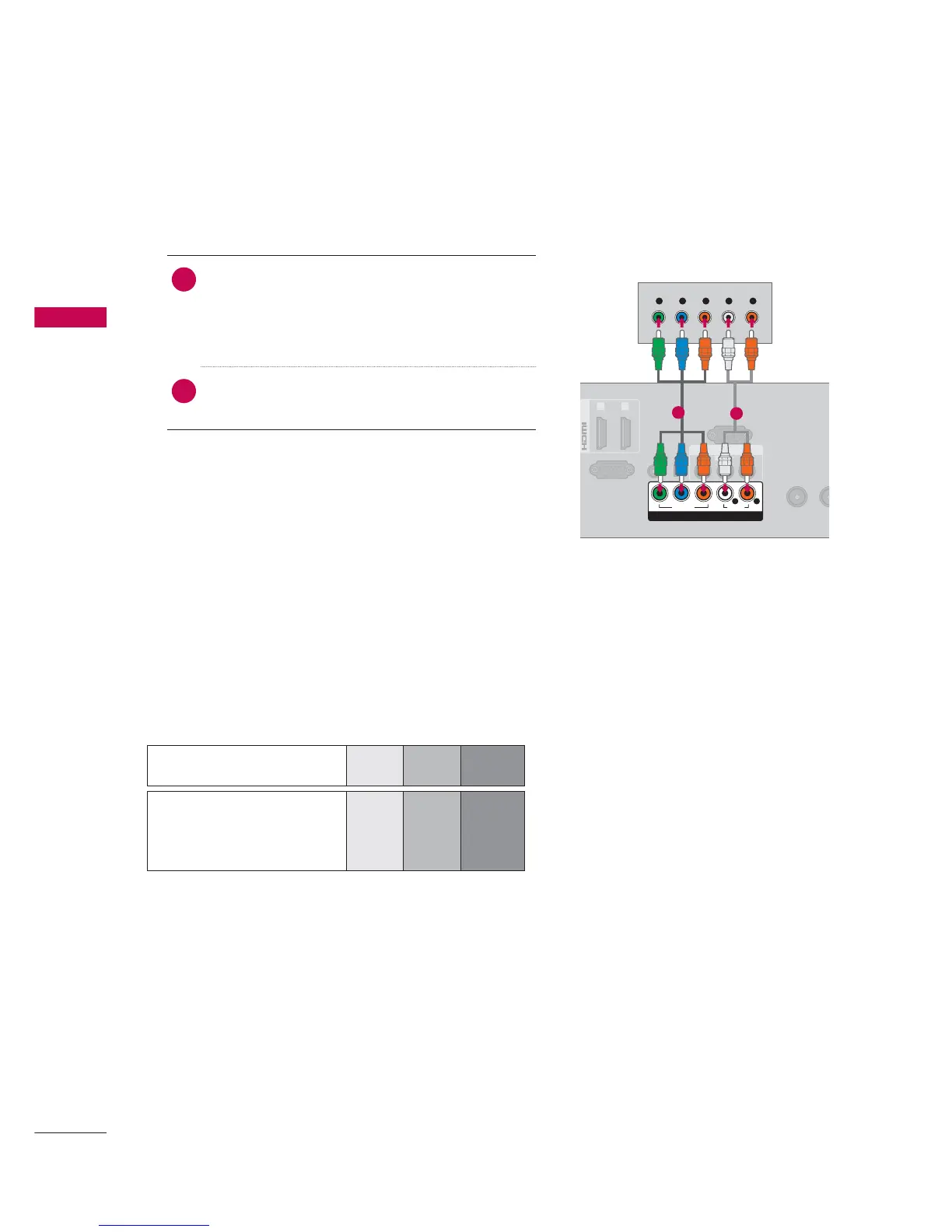 DVD to the COMPONENT IN VIDEO 1 or 2 jacks