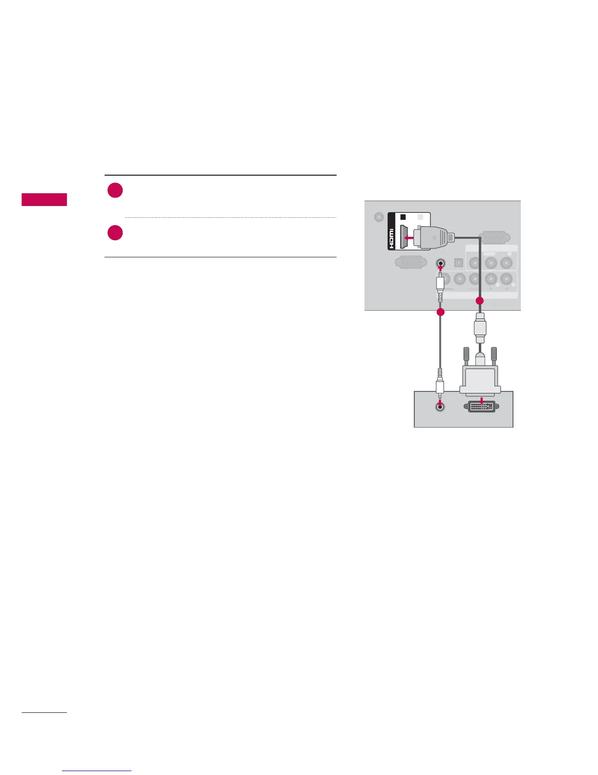 Connect the DVI output of the PC to the HDMI/