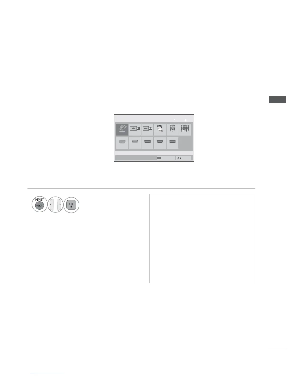 By using TV/RAD button, you can move from External Input to RF Input and to the last watched pro-