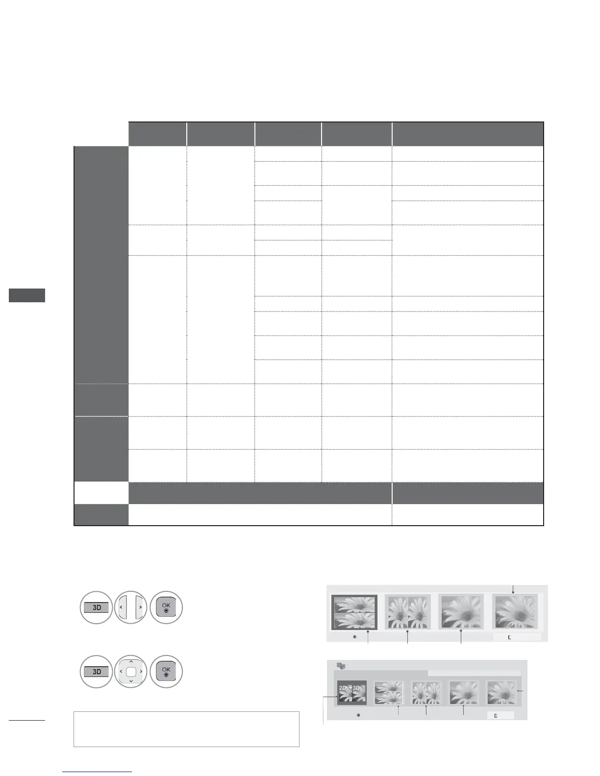 Video, which is input as HDMI (V. 1.4 with 3D) Frame Packing format, is switched into the 3D screen