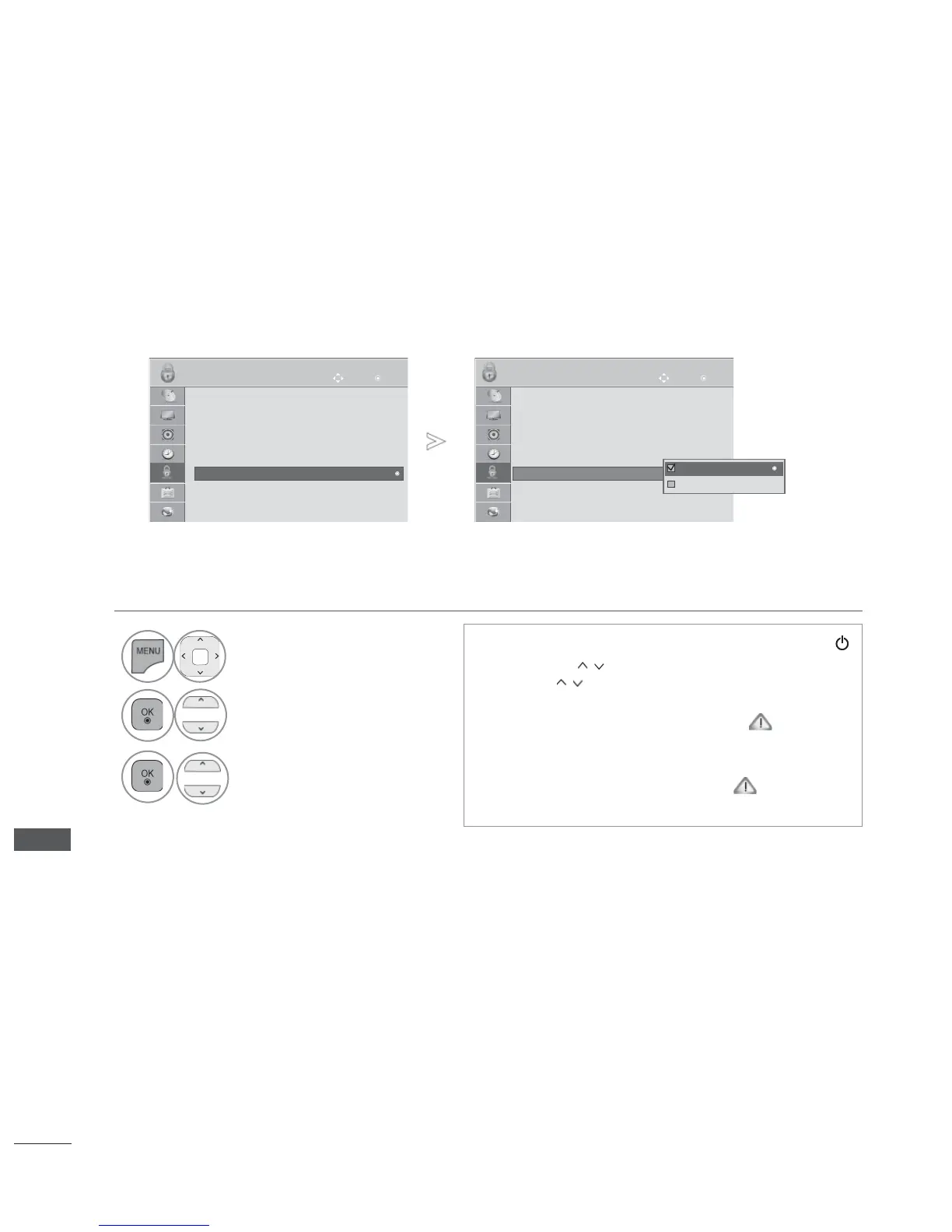 In Key Lock ‘On’, if the TV is turned off, press the