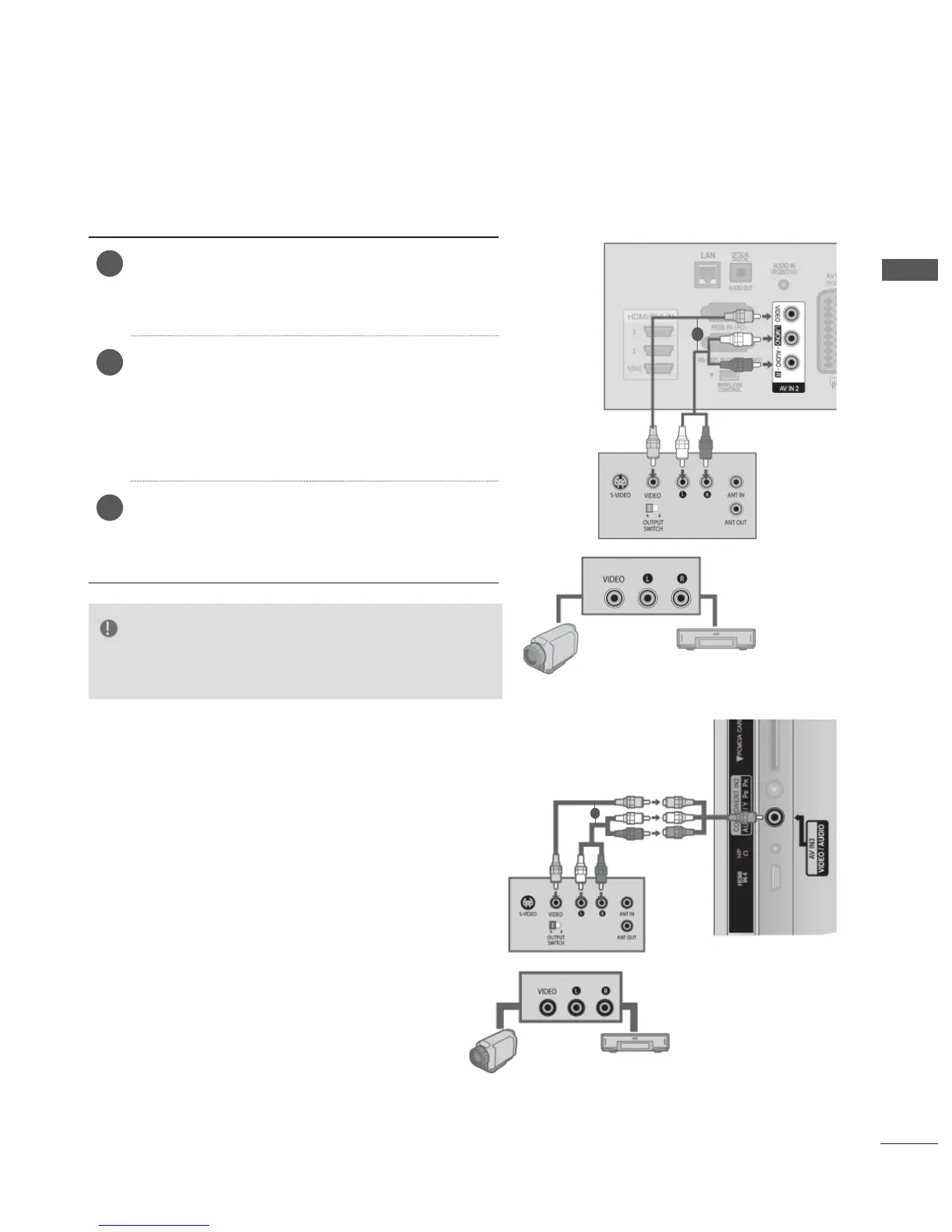 Connect the AUDIO/VIDEO jacks between TV