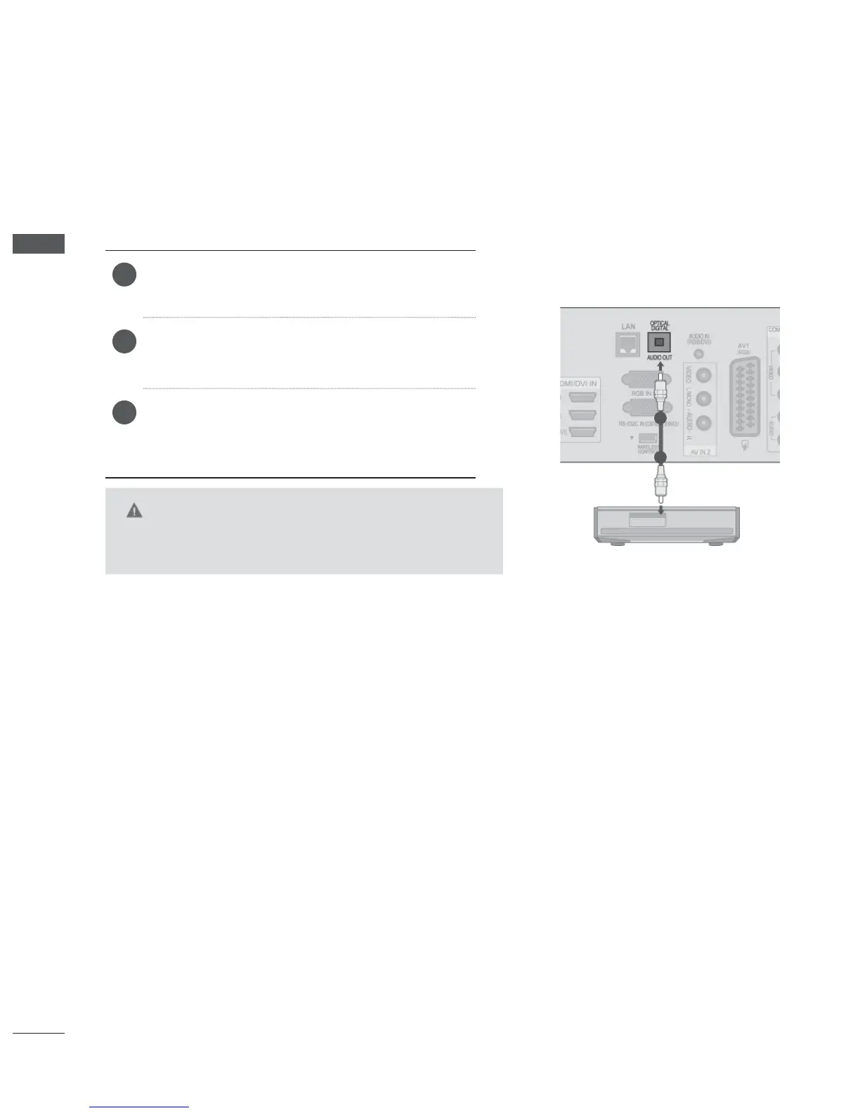 Sending the TV’s audio signal to external audio equipment via the Digital Audio Output (Optical) port.