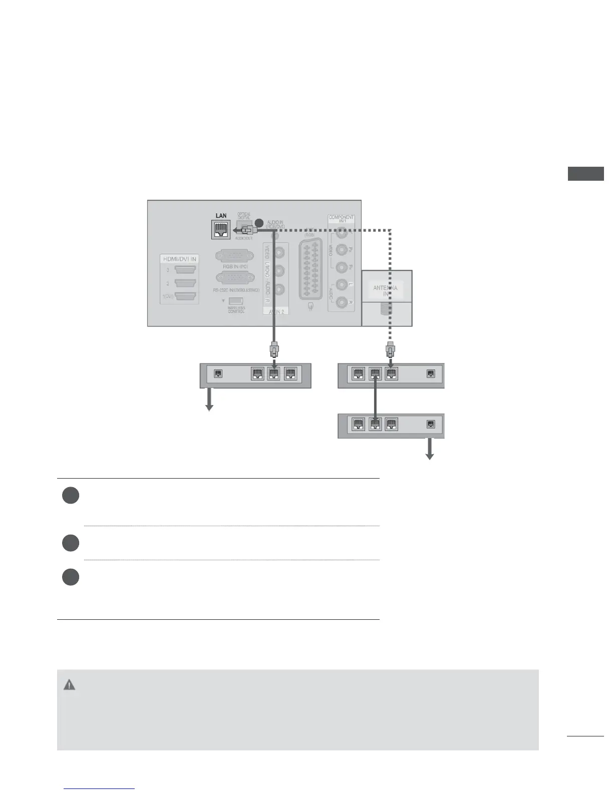 This TV can be connected to a local area network (LAN) via the LAN port. After making the physical