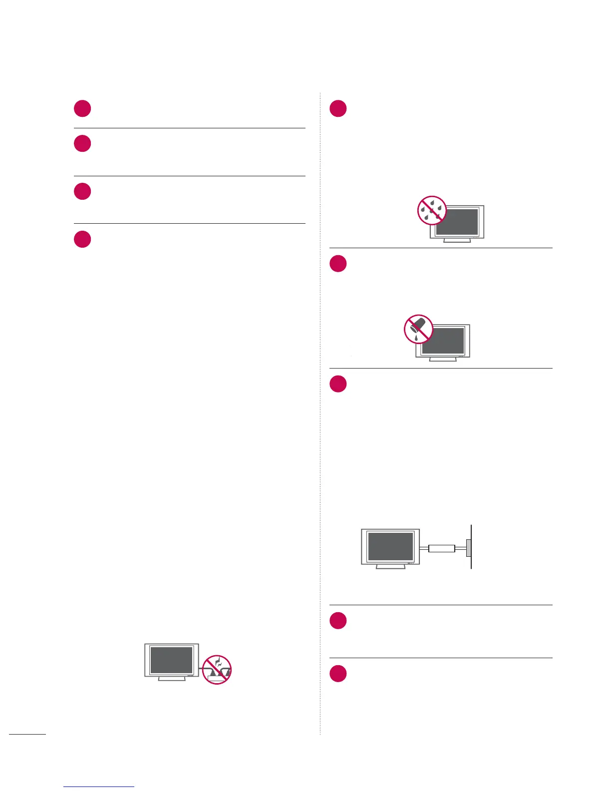 the TV with wet hands. Do not install this