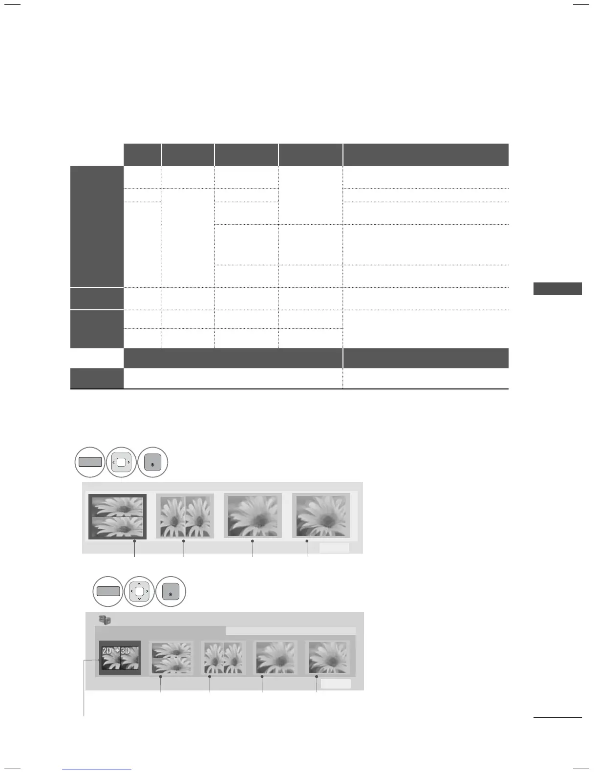 Video, which is input as HDMI (V. 1.4 with HDMI 3D) Frame Packing format, is switched into the 3D screen