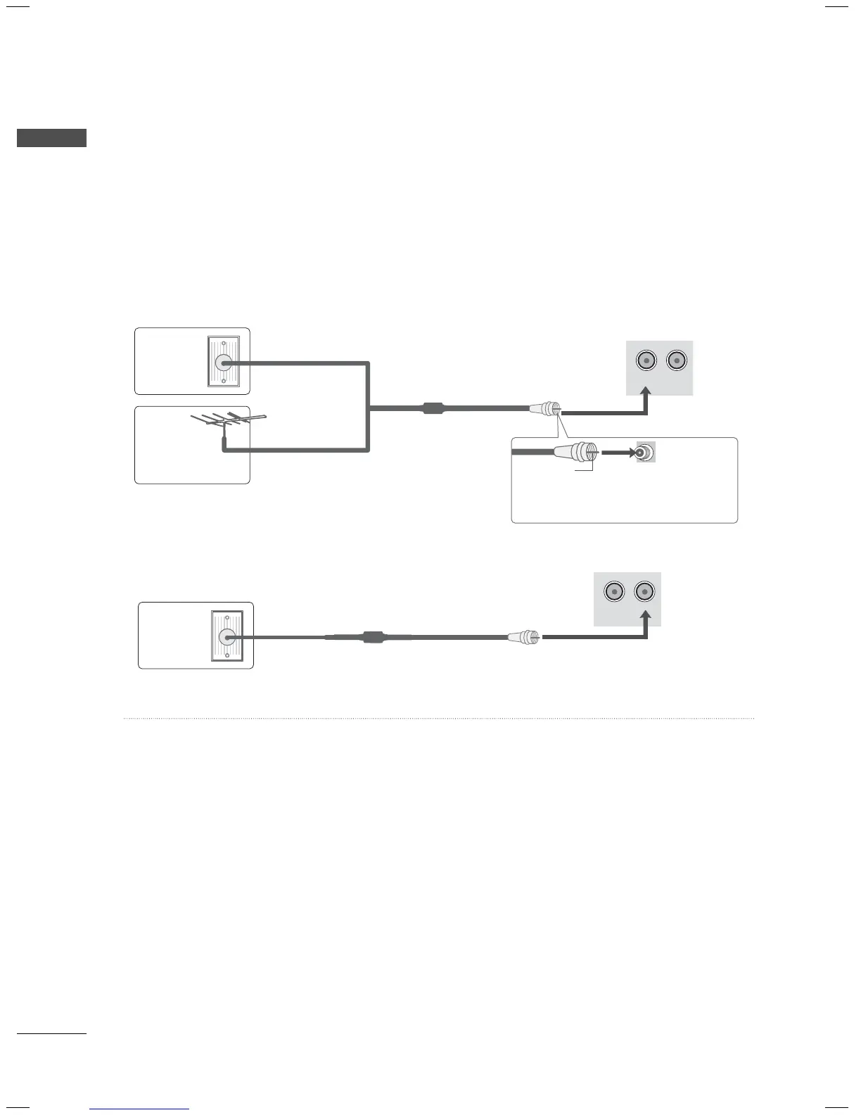 If the antenna needs to be split for two TV’s, install a 2-Way Signal Splitter.