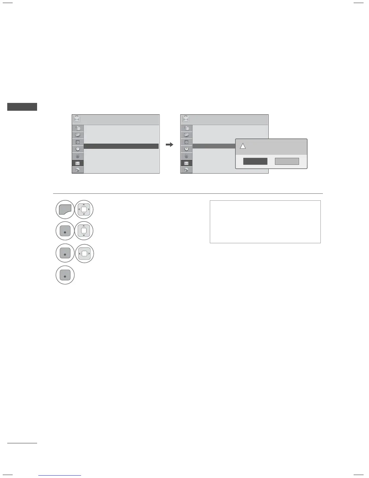 This function resets the TV to factory default and erases all stored channels.