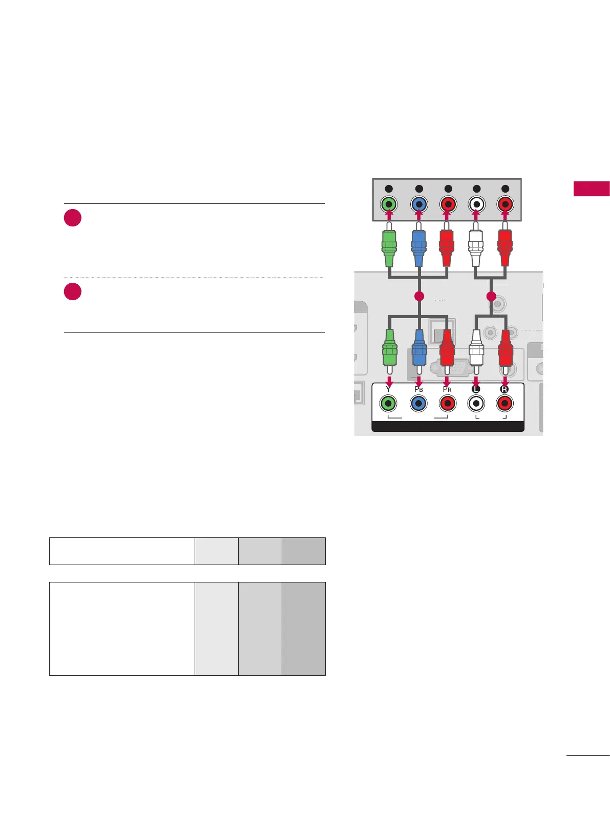 To get better picture quality, connect a DVD player to the component input ports as shown below.