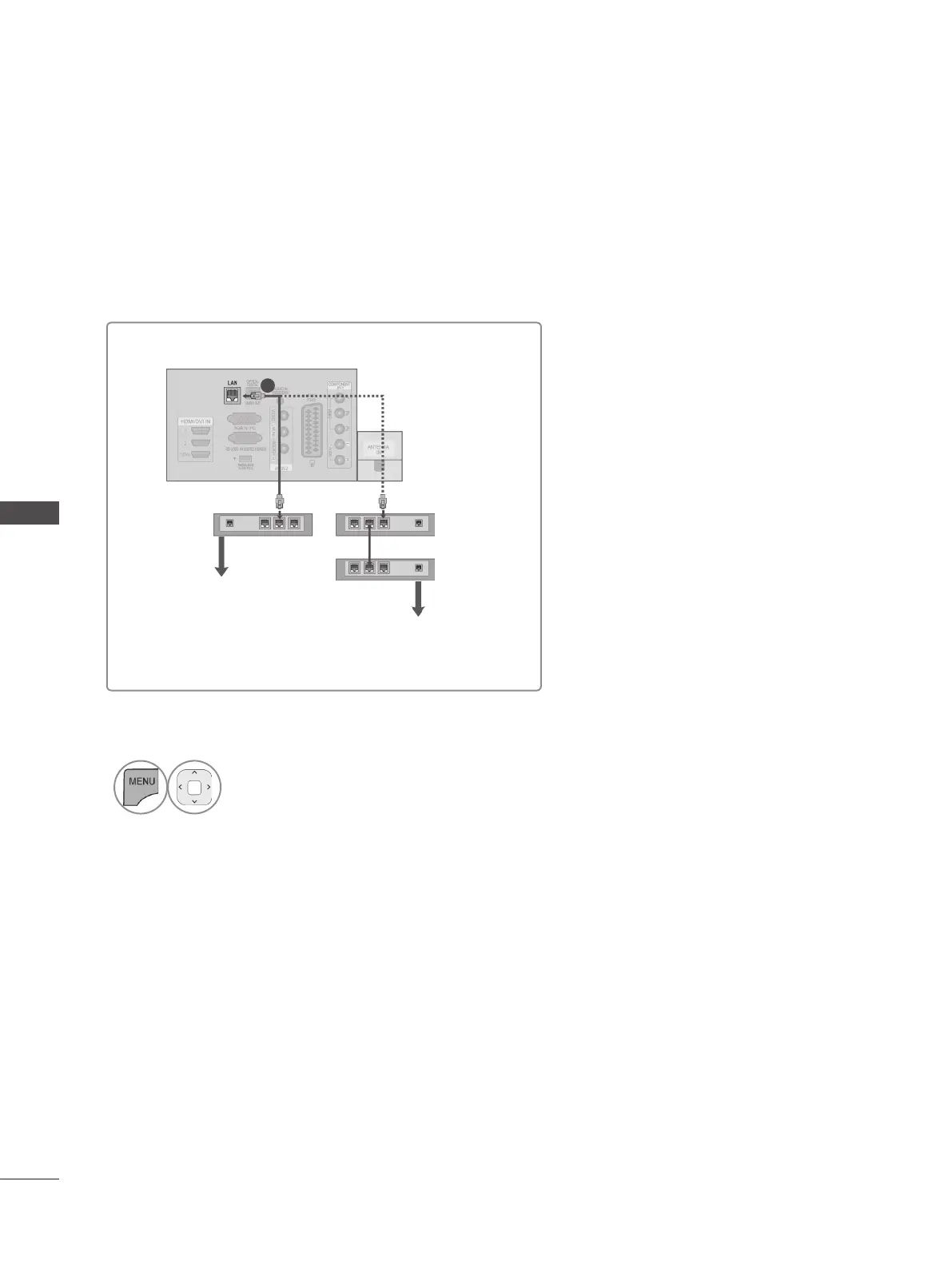Connect the LAN port of the Modem or Router to the LAN port on the TV.