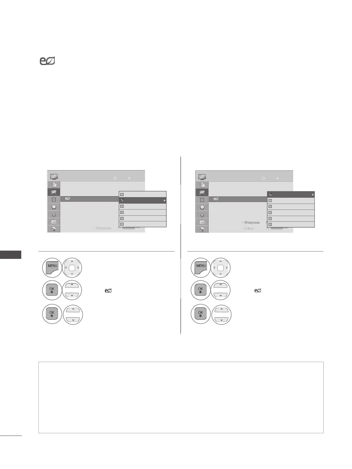 • If you adjust “Energy Saving-Intelligent Sensor”, Sharpness, Colour, Colour Temperature feature