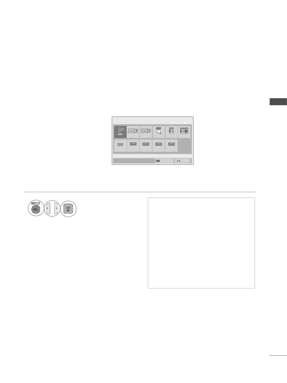 By using TV/RAD button, you can move from External Input to RF Input and to the last watched pro-