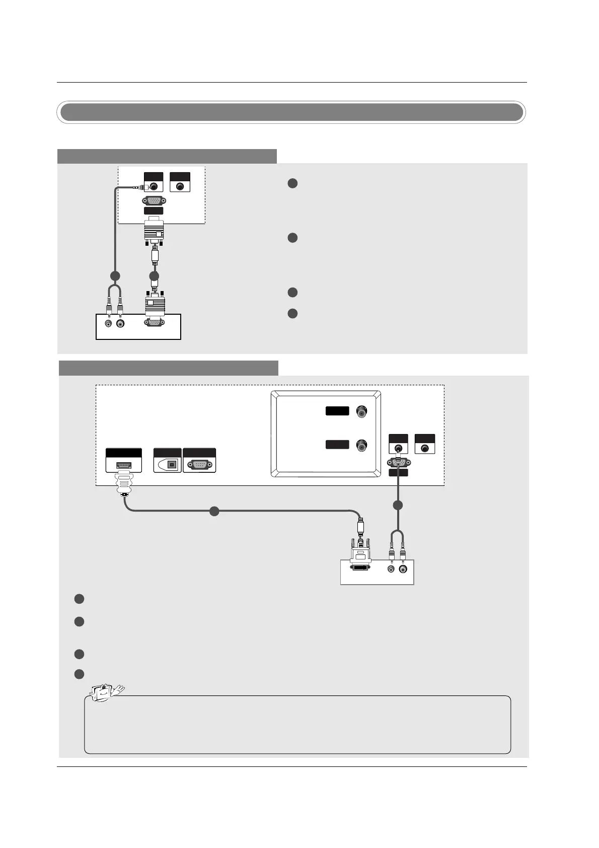 • If the PC has a DVI output and no HDMI output, a separated audio connection is necessary.