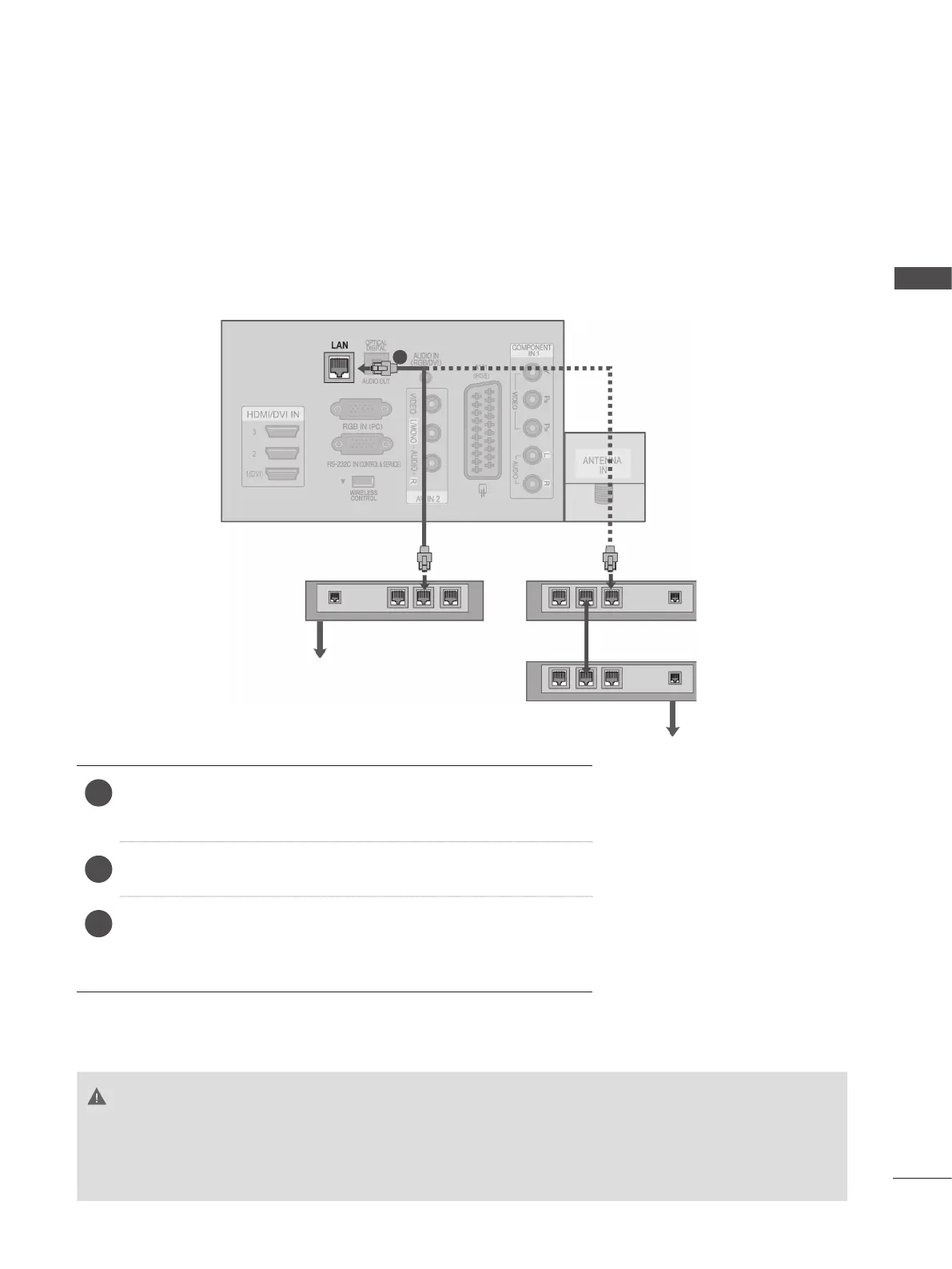This TV can be connected to a local area network (LAN) via the LAN port. After making the physical
