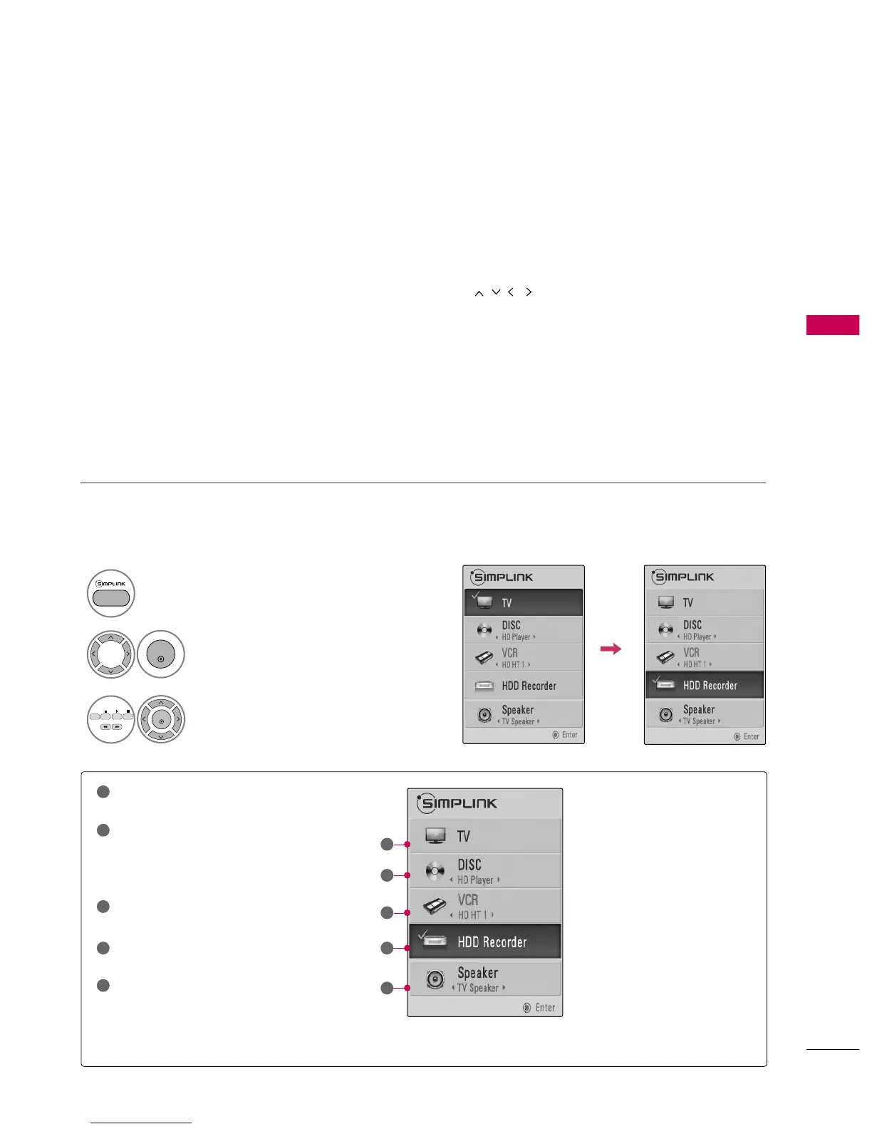 Note: To operate SIMPLINK, an HDMI cable over Version 1.3 with *CEC function should be used. (*CEC: Consumer