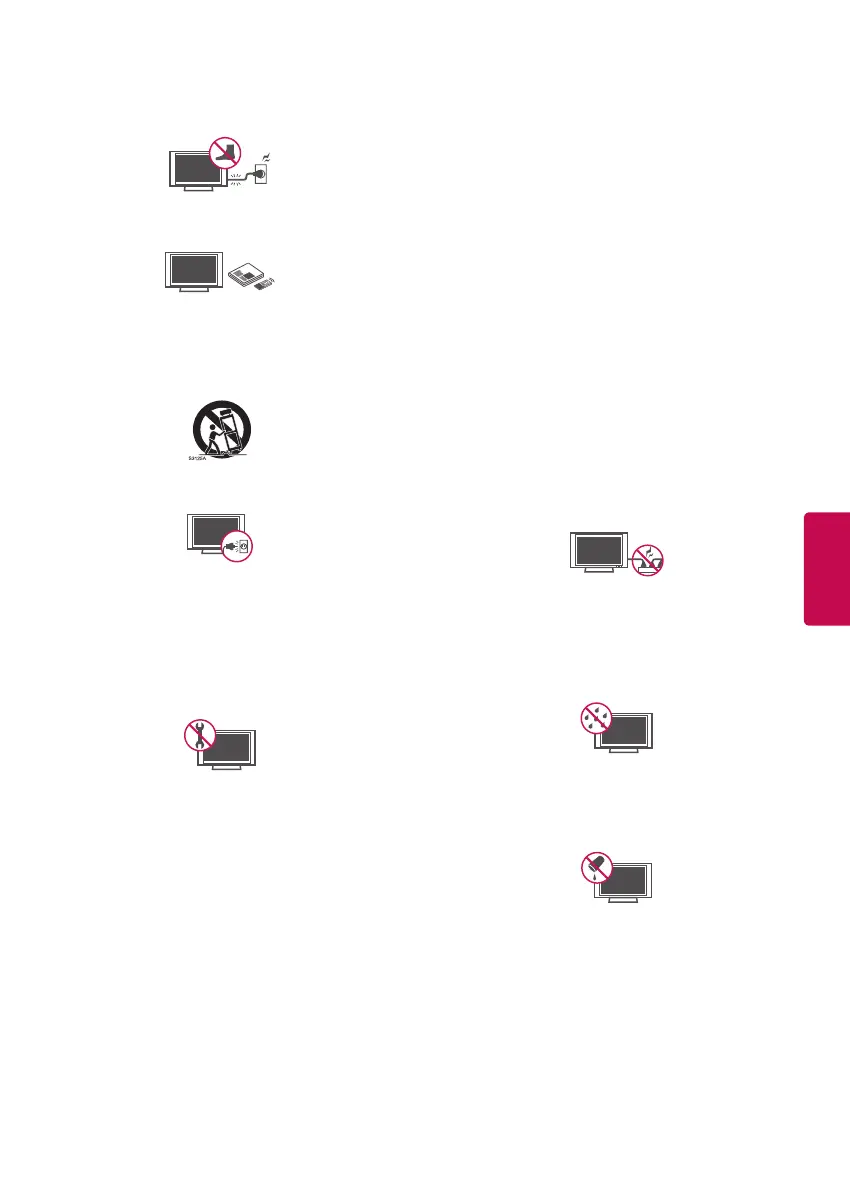 moisture or other liquids. Do not touch the TV