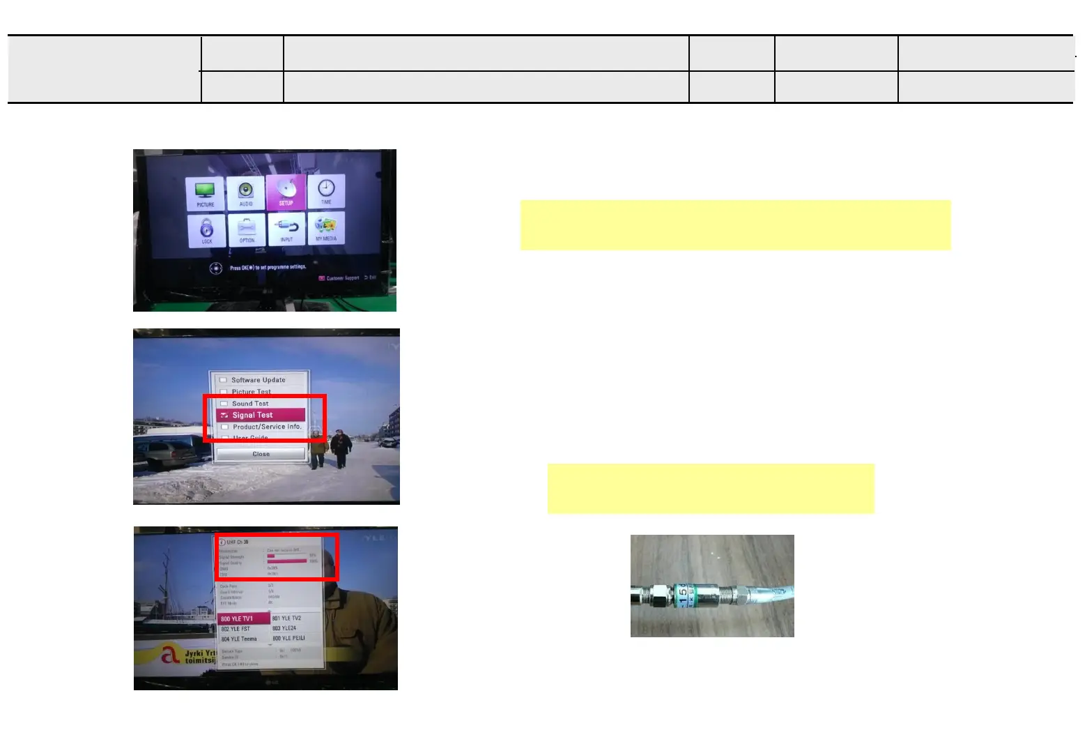 MENU => Press red key Remote controller=>signal test